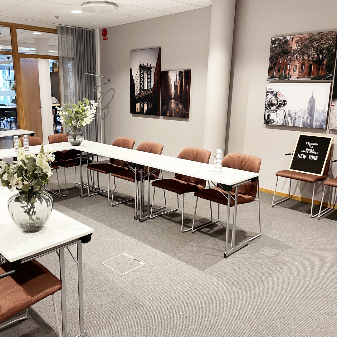 New York är perfekt för mindre utbildningar och seminarier. Den rymmer 16 sittande personer och du har även möjlighet att använda lobbyn för att dela upp gruppen i mindre diskussionsgrupper