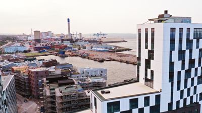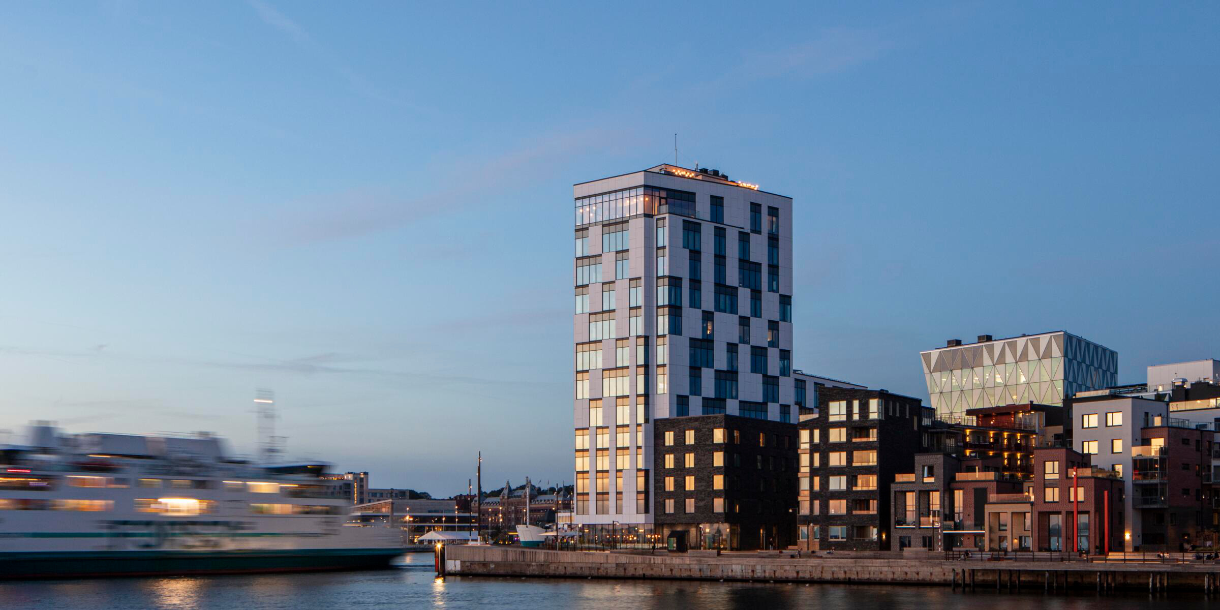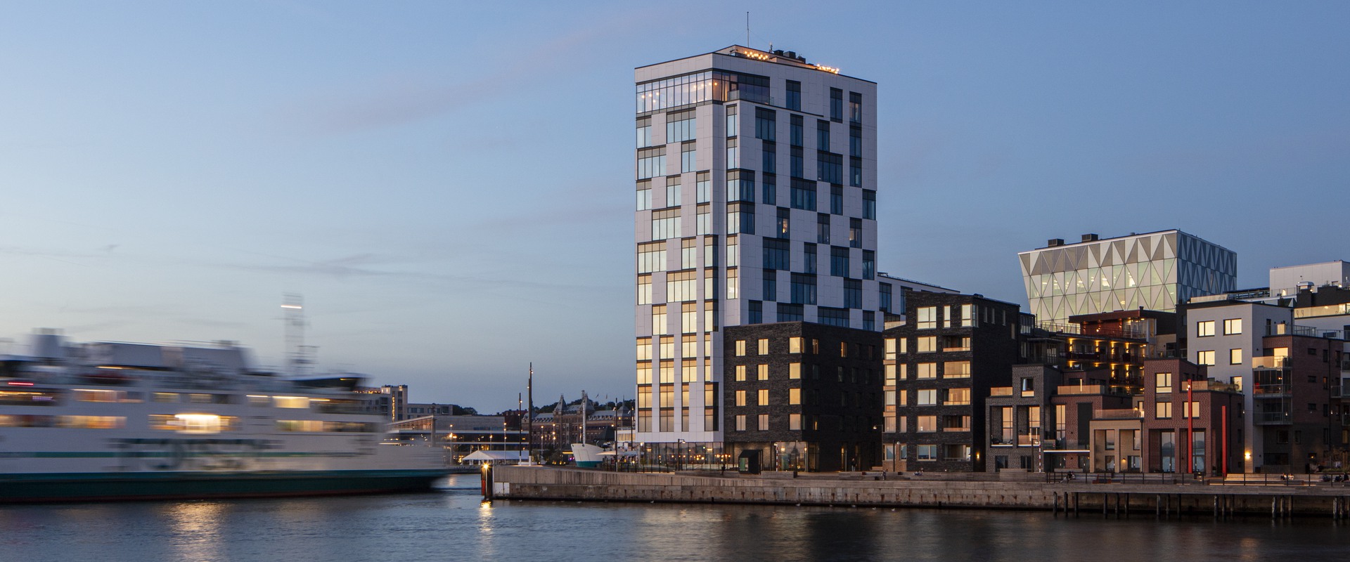 Bröderna Pihls Gränd i Oceanhamnen är den högsta byggnaden i stadsdelen och reser sig likt ett fyrtorn vid porten till Sverige.